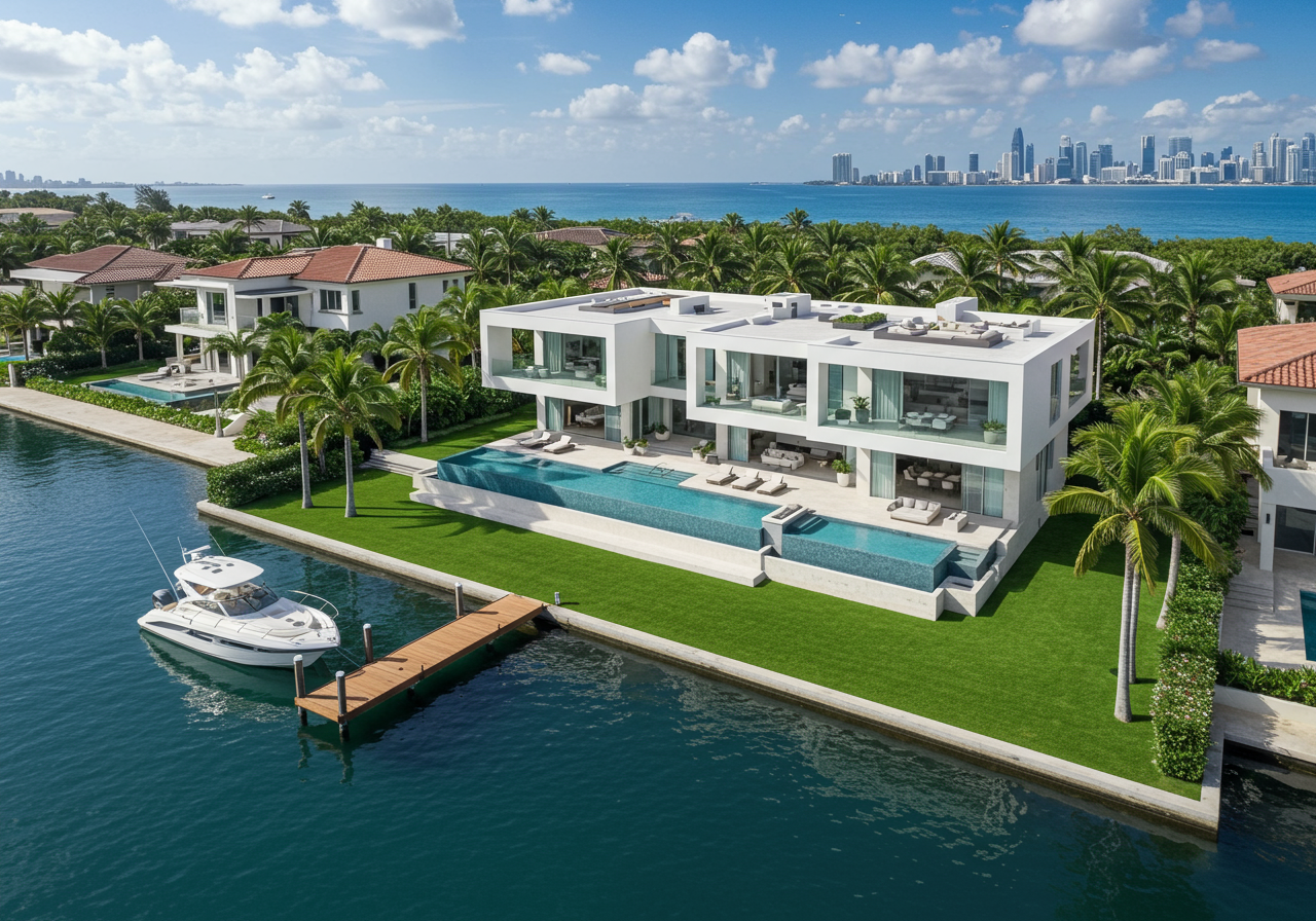 6 Bed | 6 Bath | 2 Half Bath | $19,500,000 | Carlo DipasqualeWelcome to 749 Bamboo Drive, located in the prestigious waterfront community of South Florida. This contemporary masterpiece built in 2023 offers a blend of elegance and cutting-edge design across its expansive 7,502 square feet of interior space. This two-story home features six bedrooms and eight bathrooms, providing ample space for residents and guests and offering 132 feet of water frontage.