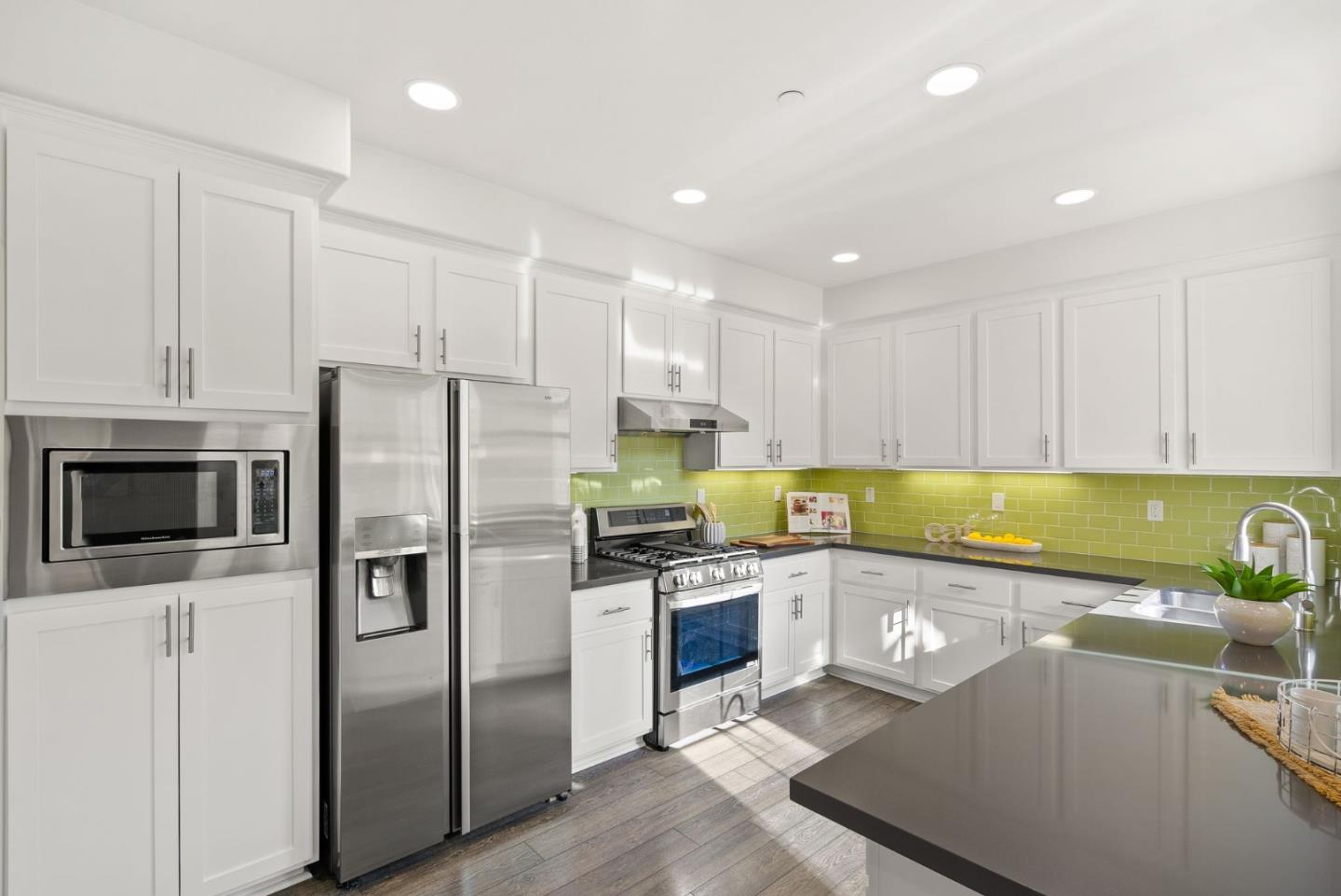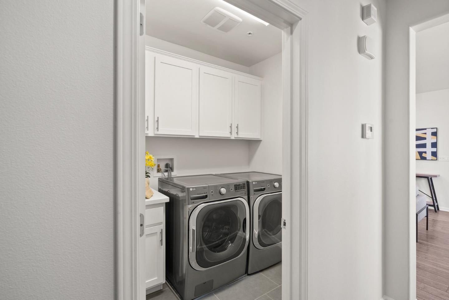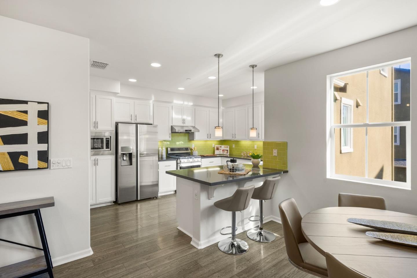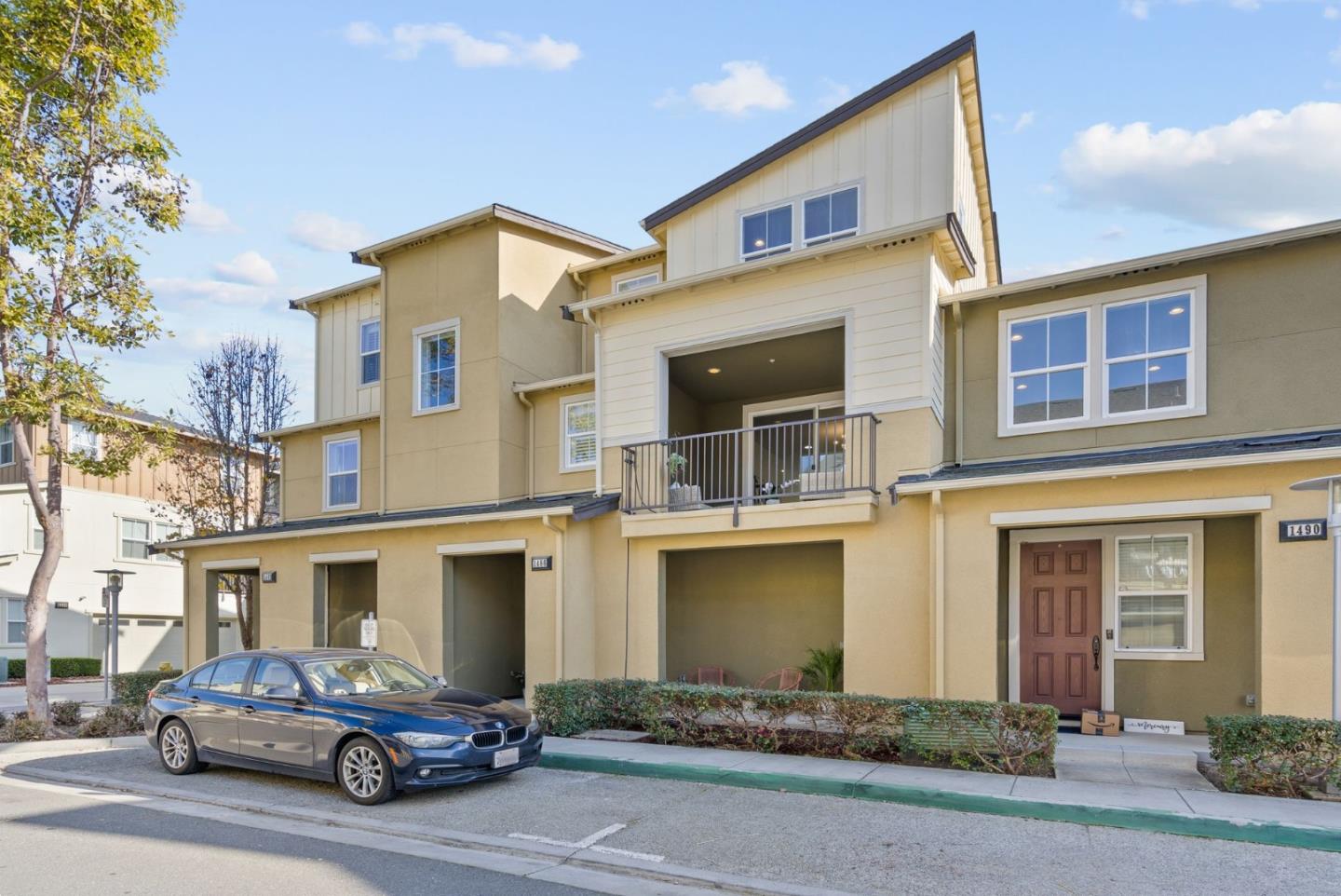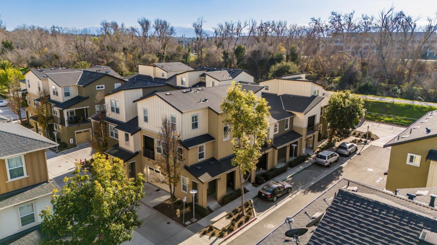 Spectacular 3-bedroom, 2-bathroom townhome located in the vibrant city of Milpitas. The largest plan in sought-after Coyote Creek Community at 1,951 sq ft., extended by a deep balcony. Dream peacefully in the spacious top floor suite with a lavish custom organized walk-in closet. An open kitchen looks over your living room and out to the balcony. Full of natural light and features quartz countertops, a custom backsplash, new gas range, microwave, and dishwasher. Enjoy meals in the dining area or help with homework at the breakfast bar. The home boasts diverse flooring options, including carpet, tile, and LV wood, providing a warm and inviting atmosphere. Relax in the summer with central A/C and stay cozy year round with multi-zone heating. Laundry chores are a breeze in the laundry room which includes a full size washer and dryer and ample cabinets for storage. Additional amenities include double pane windows, energy-efficient appliances, and a Tesla EV charger. The 2-car garage and high quality built-in storage make this home complete with all the thoughtful details and conveniences that impress. Easy access to nearby Cisco Campus, KLA, FireFly, and Western Digital. Recreation comes easily with the 18 mile Coyote Creek Trail, & Cerano Park closeby.