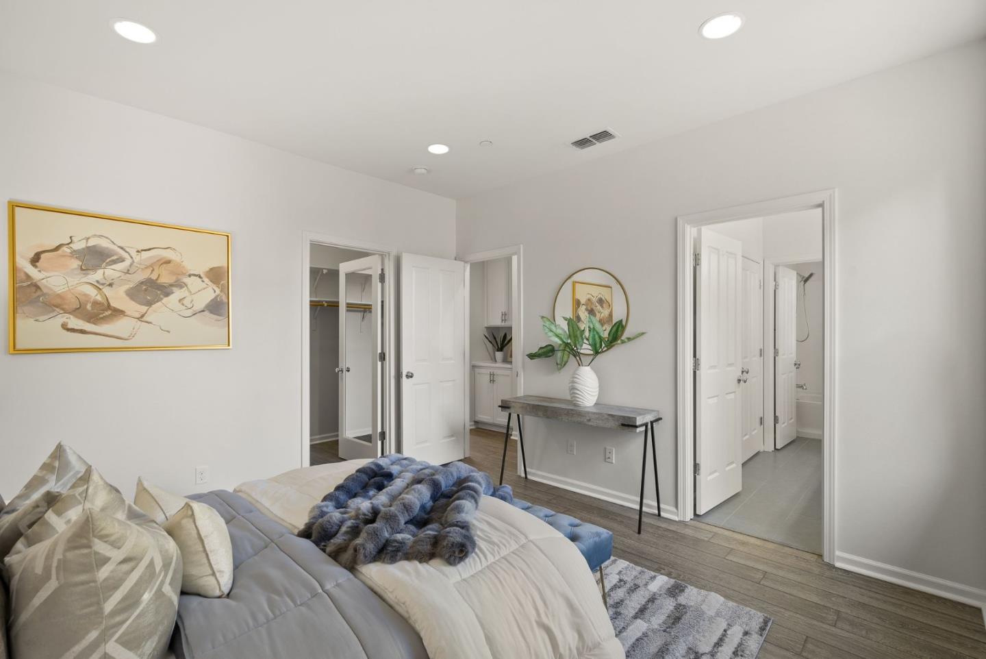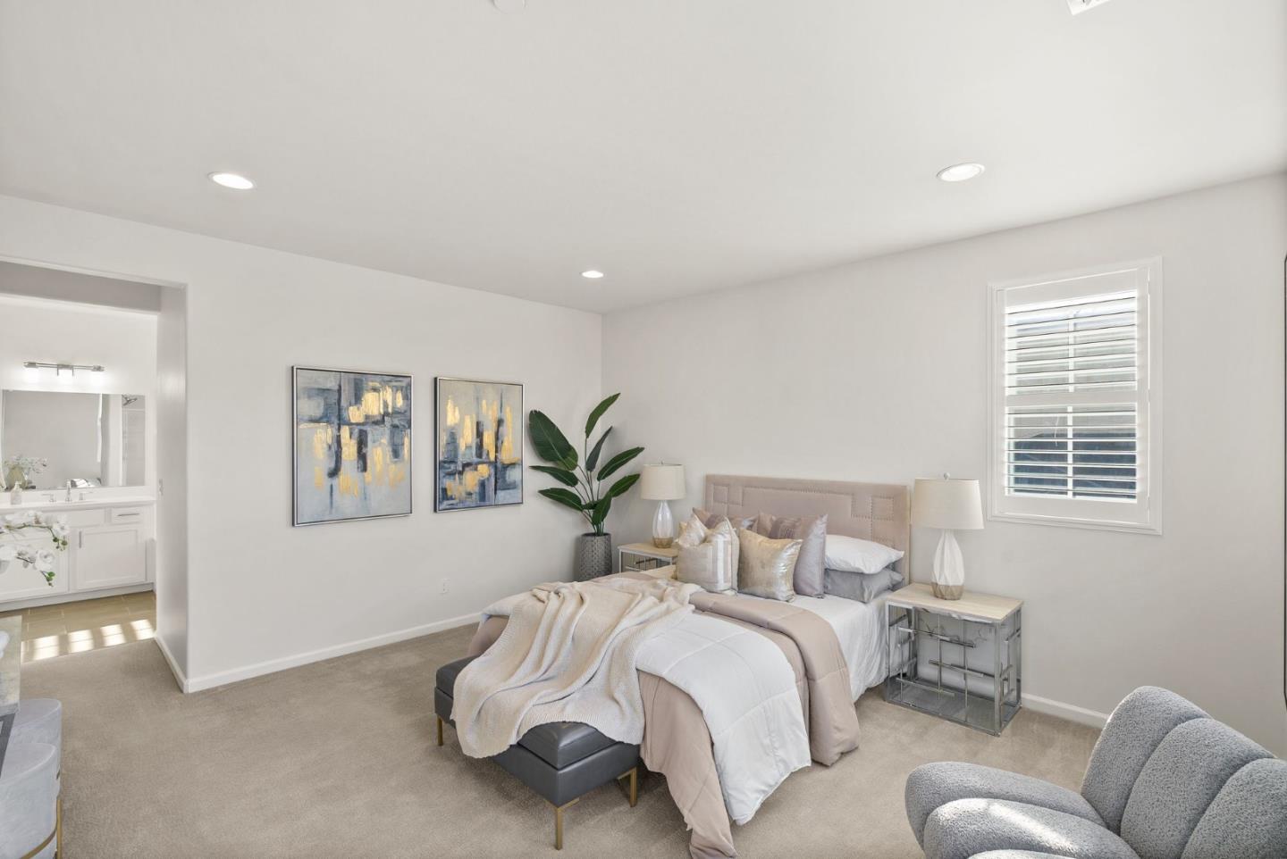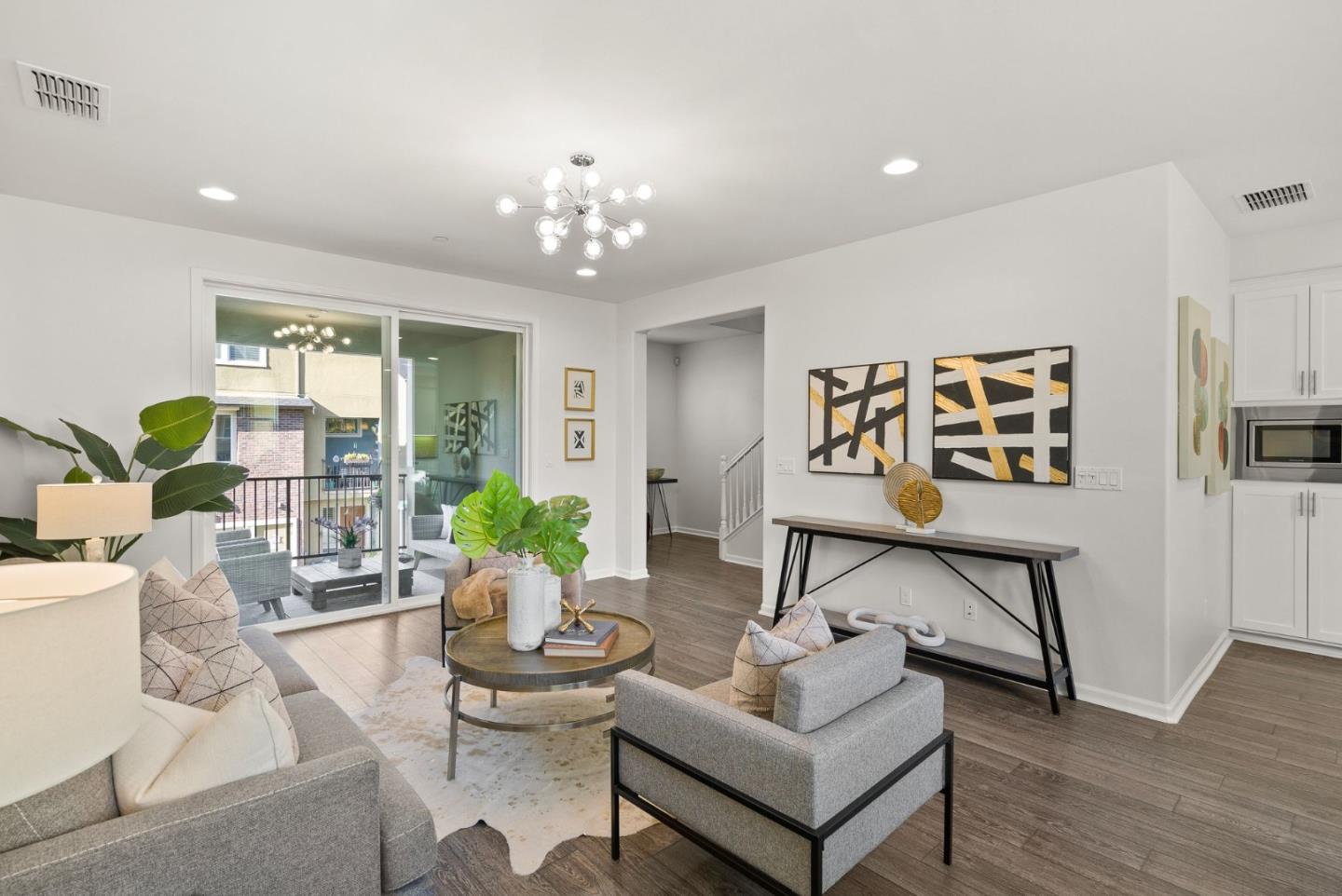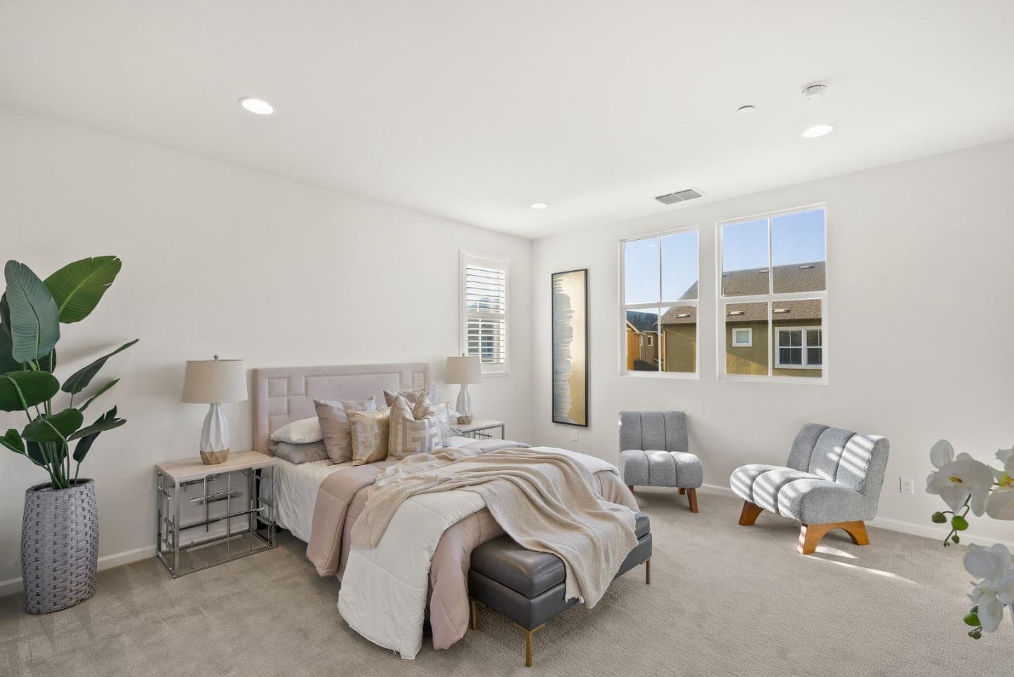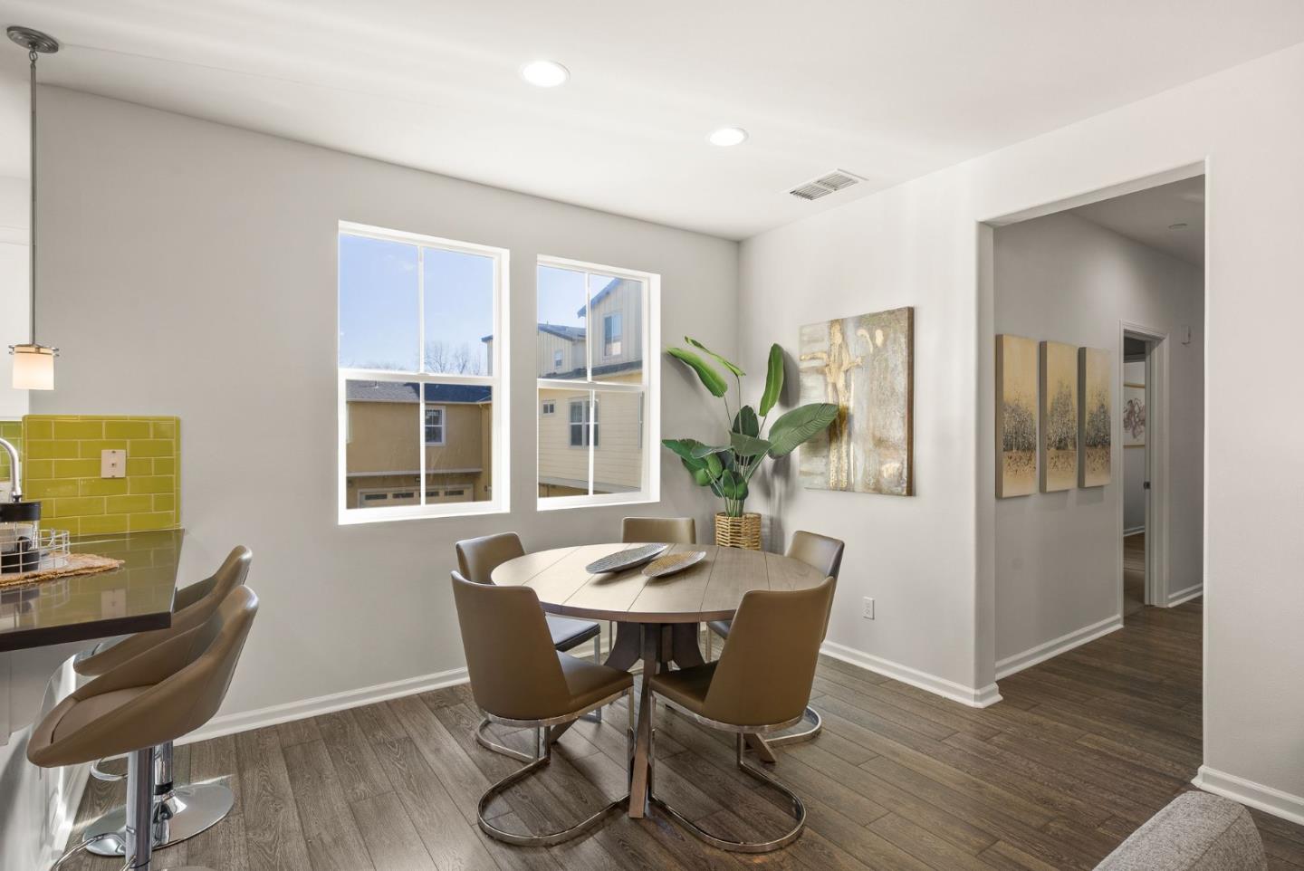 Spectacular 3-bedroom, 2-bathroom townhome located in the vibrant city of Milpitas. The largest plan in sought-after Coyote Creek Community at 1,951 sq ft., extended by a deep balcony. Dream peacefully in the spacious top floor suite with a lavish custom organized walk-in closet. An open kitchen looks over your living room and out to the balcony. Full of natural light and features quartz countertops, a custom backsplash, new gas range, microwave, and dishwasher. Enjoy meals in the dining area or help with homework at the breakfast bar. The home boasts diverse flooring options, including carpet, tile, and LV wood, providing a warm and inviting atmosphere. Relax in the summer with central A/C and stay cozy year round with multi-zone heating. Laundry chores are a breeze in the laundry room which includes a full size washer and dryer and ample cabinets for storage. Additional amenities include double pane windows, energy-efficient appliances, and a Tesla EV charger. The 2-car garage and high quality built-in storage make this home complete with all the thoughtful details and conveniences that impress. Easy access to nearby Cisco Campus, KLA, FireFly, and Western Digital. Recreation comes easily with the 18 mile Coyote Creek Trail, & Cerano Park closeby.