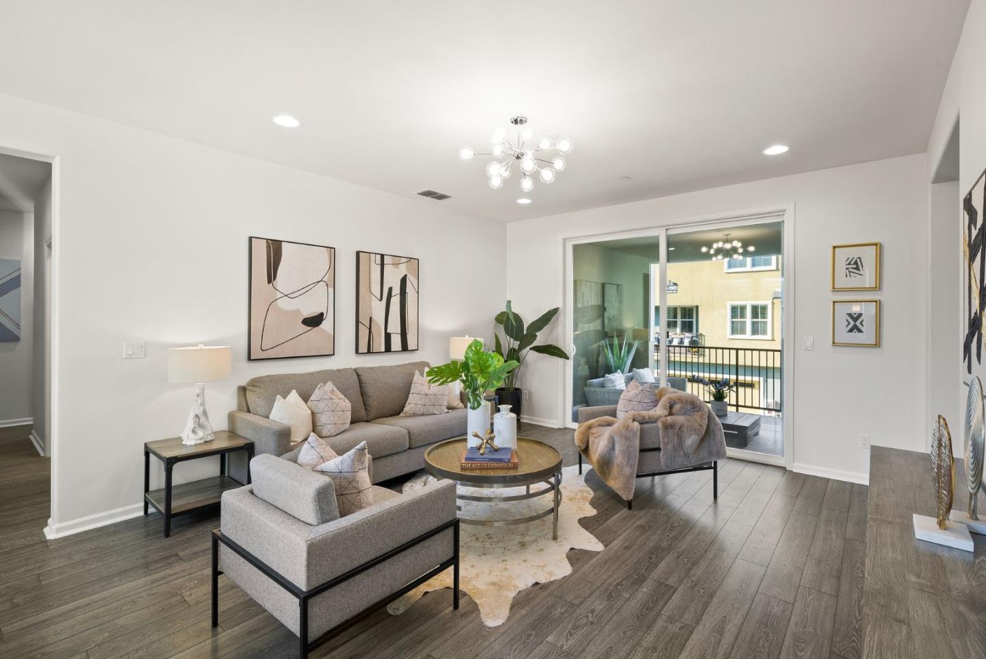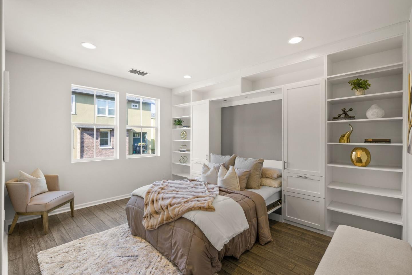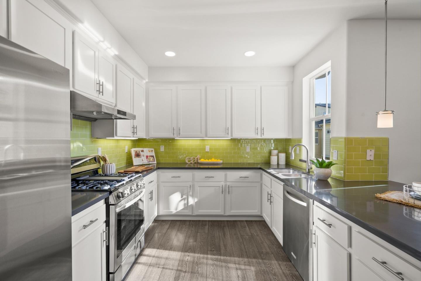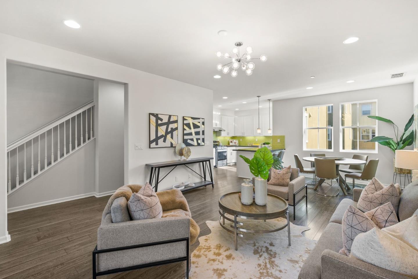 Spectacular 3-bedroom, 2-bathroom townhome located in the vibrant city of Milpitas. The largest plan in sought-after Coyote Creek Community at 1,951 sq ft., extended by a deep balcony. Dream peacefully in the spacious top floor suite with a lavish custom organized walk-in closet. An open kitchen looks over your living room and out to the balcony. Full of natural light and features quartz countertops, a custom backsplash, new gas range, microwave, and dishwasher. Enjoy meals in the dining area or help with homework at the breakfast bar. The home boasts diverse flooring options, including carpet, tile, and LV wood, providing a warm and inviting atmosphere. Relax in the summer with central A/C and stay cozy year round with multi-zone heating. Laundry chores are a breeze in the laundry room which includes a full size washer and dryer and ample cabinets for storage. Additional amenities include double pane windows, energy-efficient appliances, and a Tesla EV charger. The 2-car garage and high quality built-in storage make this home complete with all the thoughtful details and conveniences that impress. Easy access to nearby Cisco Campus, KLA, FireFly, and Western Digital. Recreation comes easily with the 18 mile Coyote Creek Trail, & Cerano Park closeby.