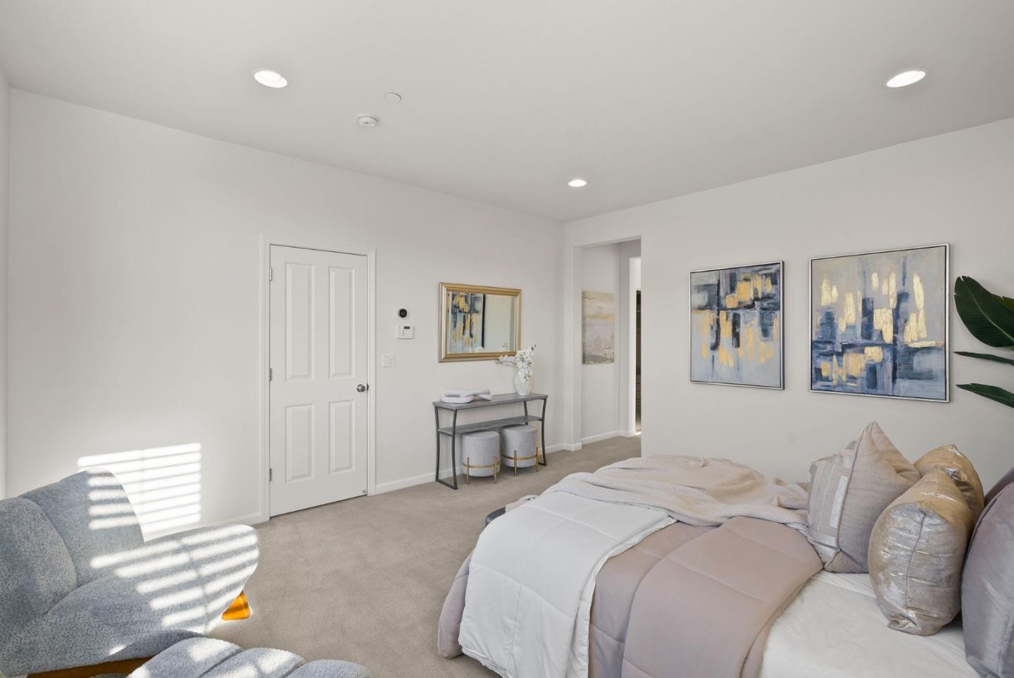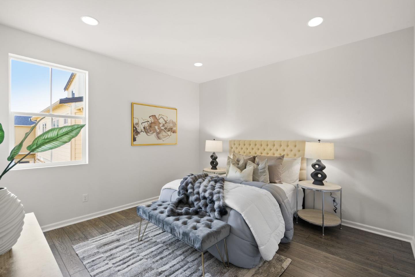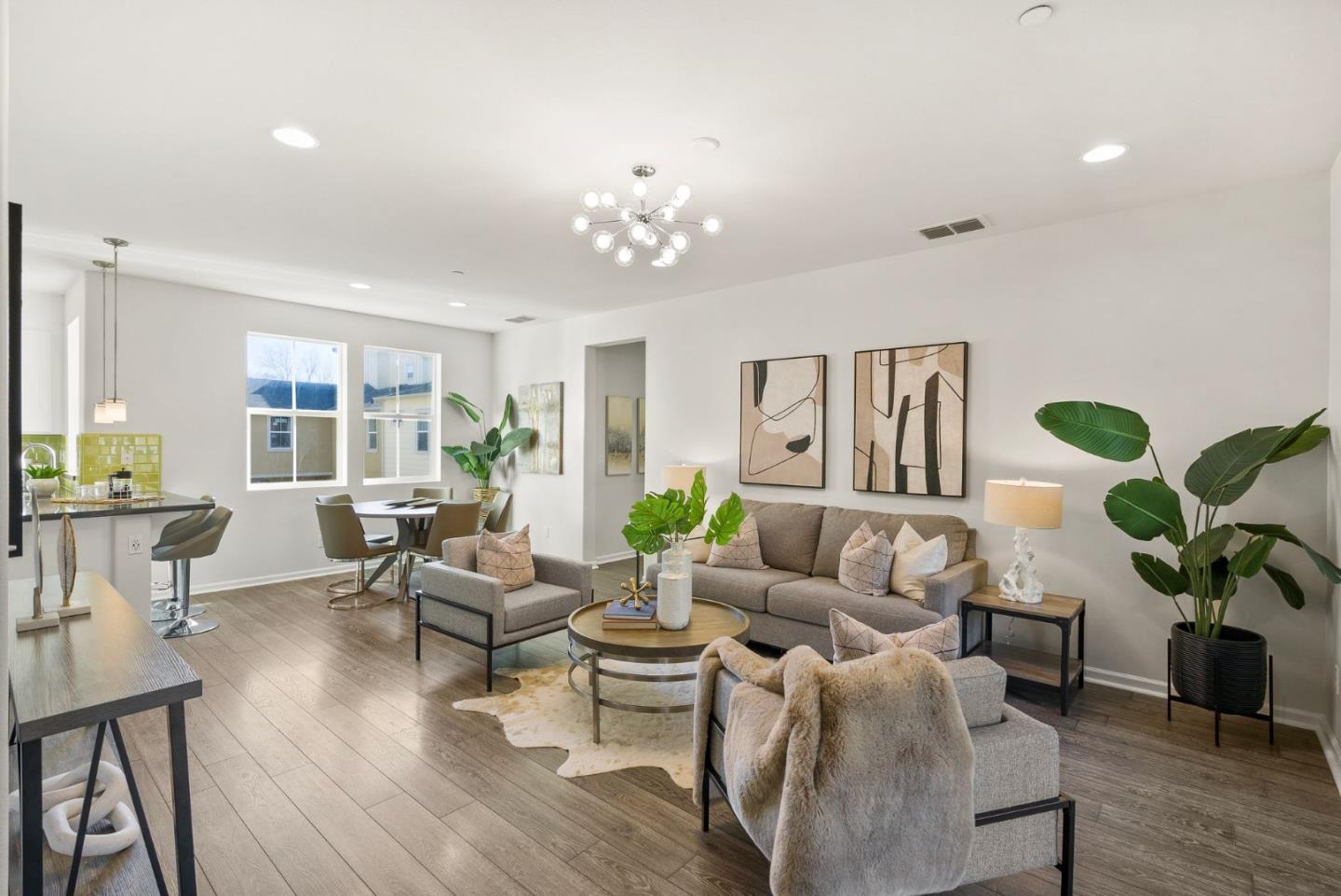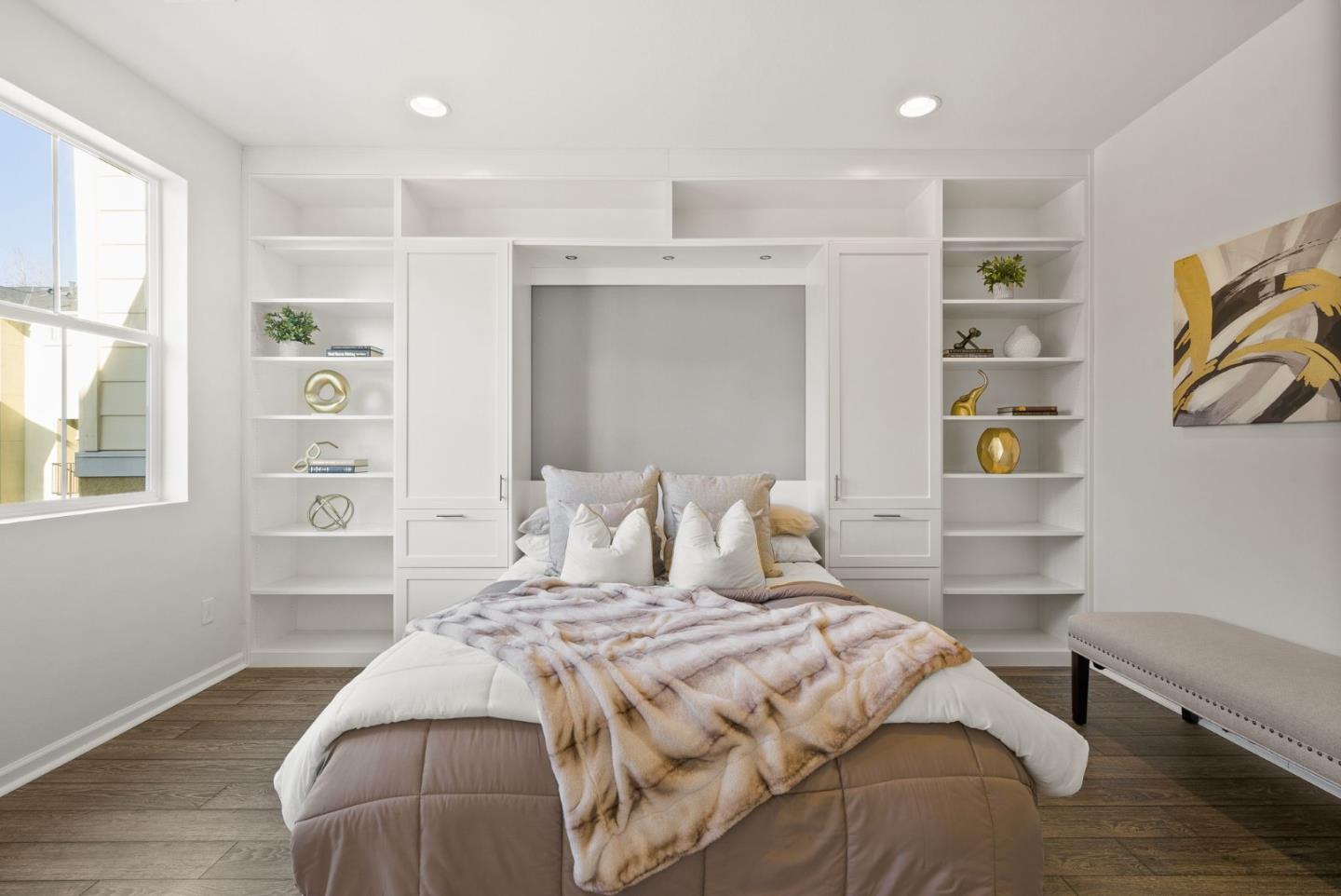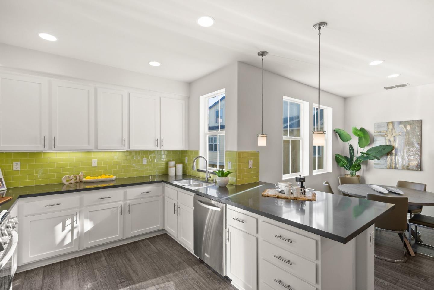 Spectacular 3-bedroom, 2-bathroom townhome located in the vibrant city of Milpitas. The largest plan in sought-after Coyote Creek Community at 1,951 sq ft., extended by a deep balcony. Dream peacefully in the spacious top floor suite with a lavish custom organized walk-in closet. An open kitchen looks over your living room and out to the balcony. Full of natural light and features quartz countertops, a custom backsplash, new gas range, microwave, and dishwasher. Enjoy meals in the dining area or help with homework at the breakfast bar. The home boasts diverse flooring options, including carpet, tile, and LV wood, providing a warm and inviting atmosphere. Relax in the summer with central A/C and stay cozy year round with multi-zone heating. Laundry chores are a breeze in the laundry room which includes a full size washer and dryer and ample cabinets for storage. Additional amenities include double pane windows, energy-efficient appliances, and a Tesla EV charger. The 2-car garage and high quality built-in storage make this home complete with all the thoughtful details and conveniences that impress. Easy access to nearby Cisco Campus, KLA, FireFly, and Western Digital. Recreation comes easily with the 18 mile Coyote Creek Trail, & Cerano Park closeby.