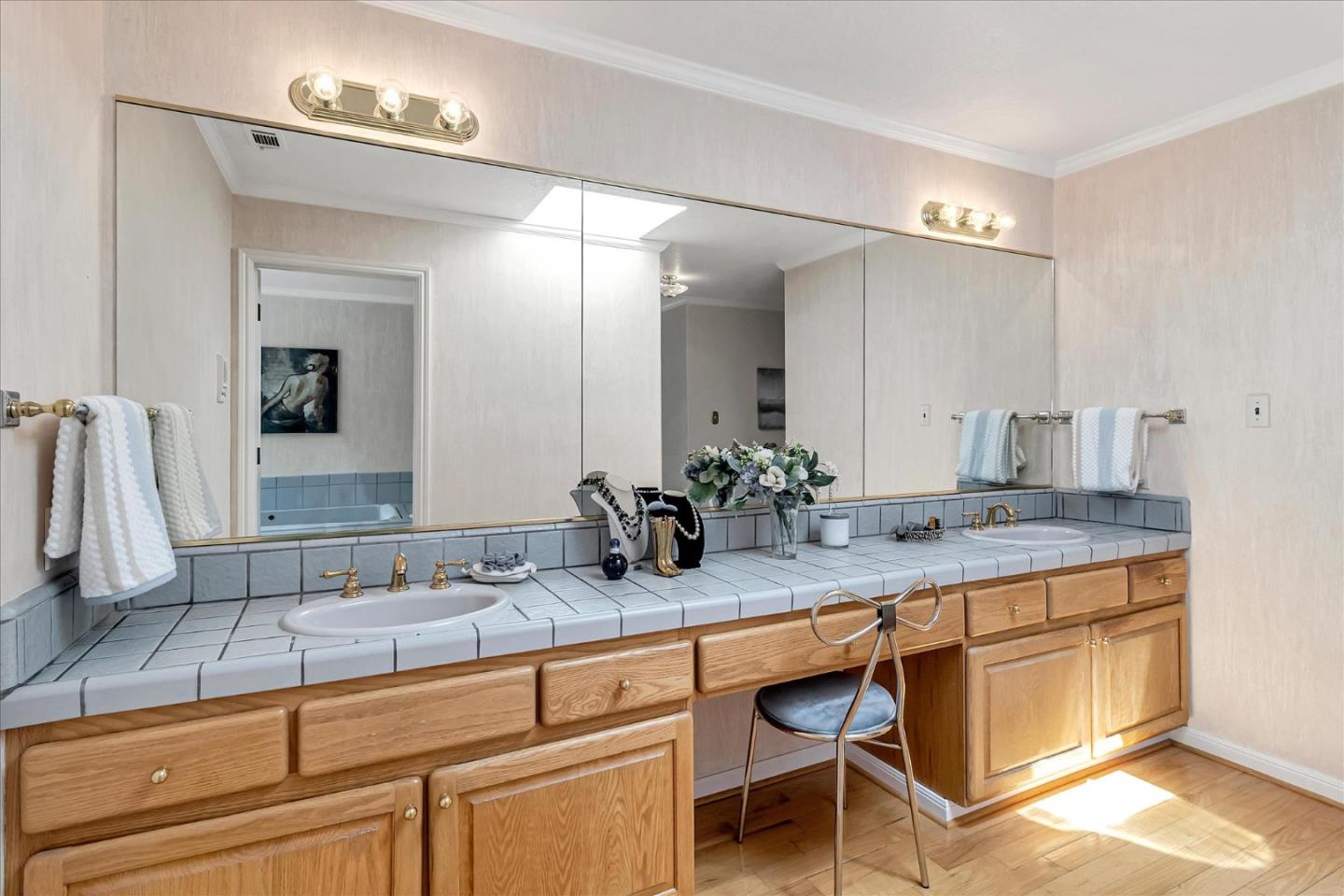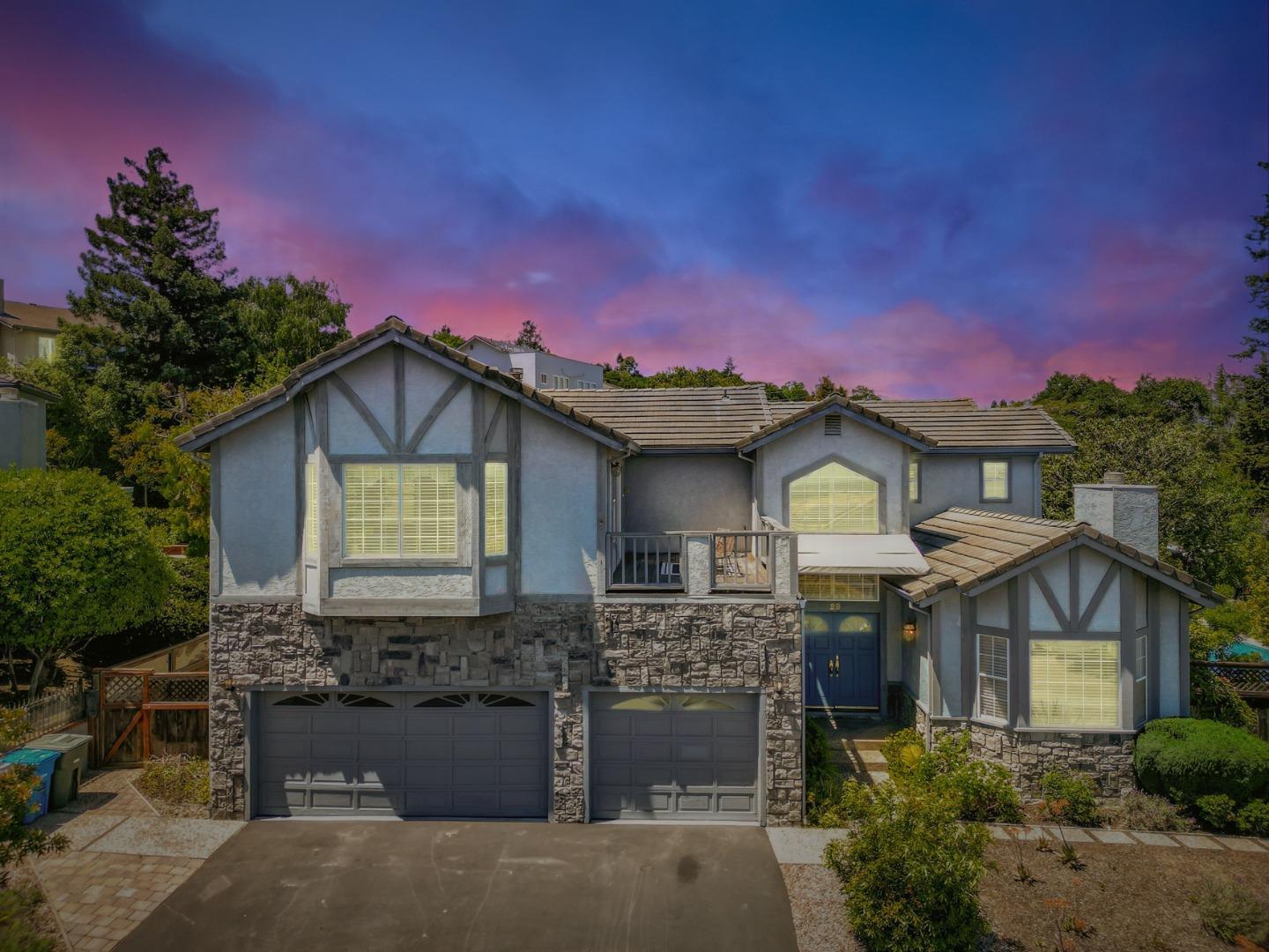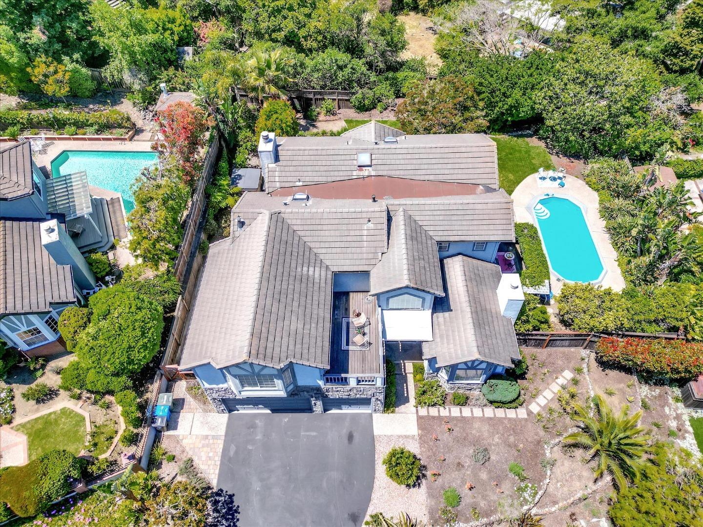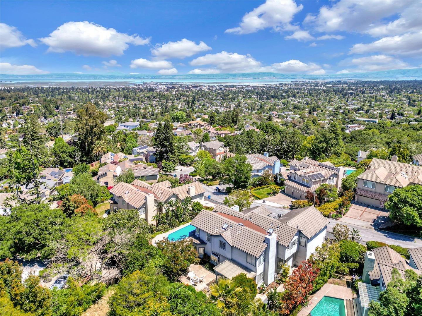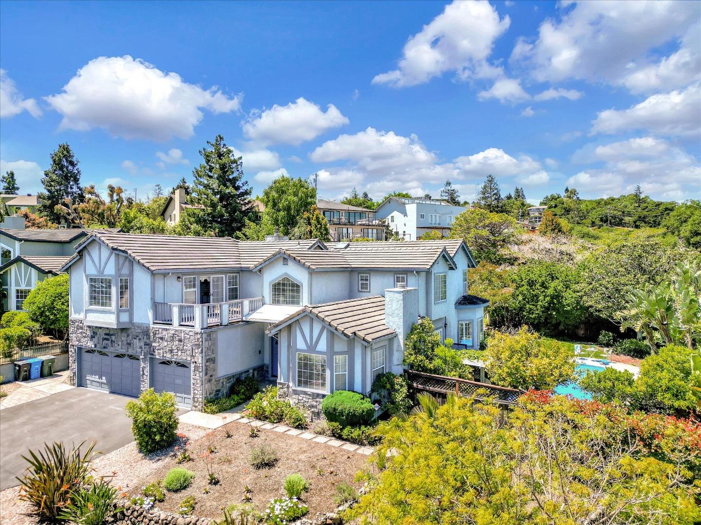 Emerald Hills VIEW Home with 3,800 sq. feet of amazing living space! 5B 3B + Fam Rm & 3 car garage. Situated on a 12,114 sq. ft. lot within a cul-de-sac. The welcoming foyer opens to a formal living room with a fireplace & a large formal dining area convenient to a deck & side yard. The chef's kitchen includes top-of-the-line appliances, an island w/gas stove top, a pantry + a sizeable eating area for casual dining. The GREAT family room offers a wet bar with glass shelving, a gas fireplace & access to the backyard. There's an en-suite bedroom with a full bath on the main level. A stately staircase leads to an expansive primary suite with a private balcony & view, a walk-in closet, a sunken jetted tub & separate shower & vanity with dual sinks. The Jack & Jill bedrooms share a bathroom with private sink & restroom areas. The 5th bedroom used as an office offers solid wood built-in cabinetry. A well-appointed large laundry room offers loads of storage and countertop workspaces. The pool, decks & hot tub & fruit trees are set in a beautiful, well-designed landscaped yard; perfect for entertaining or personal relaxation. Convenient to Roy Cloud School & Canada College. This impressive home welcomes you & your guests at the moment of arrival. View the many photos & floorplan