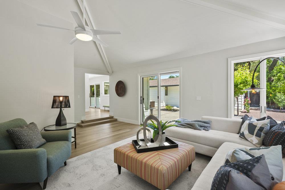 Nestled in a tranquil cul-de-sac, this sprawling single-level California ranch-style home boasts approximately 2838 square feet of space, offering ample room for both living and storage across its expansive 12,000-square-foot lot. Featuring four bedrooms, three full baths, a spacious living room, cozy family room, and an oversized two-car garage, it provides a comfortable and accommodating lifestyle. Located in the sought-after Barron Park neighborhood, renowned for its excellent schools including Barron Elementary and Gunn High, residents enjoy a vibrant community atmosphere. Nearby parks and recreational activities, coupled with scenic walking and biking trails, add to the area's allure. Recently upgraded with new floors and lighting, the sunlit interiors exude warmth and charm, complemented by generous storage options and convenient two-car garage access.