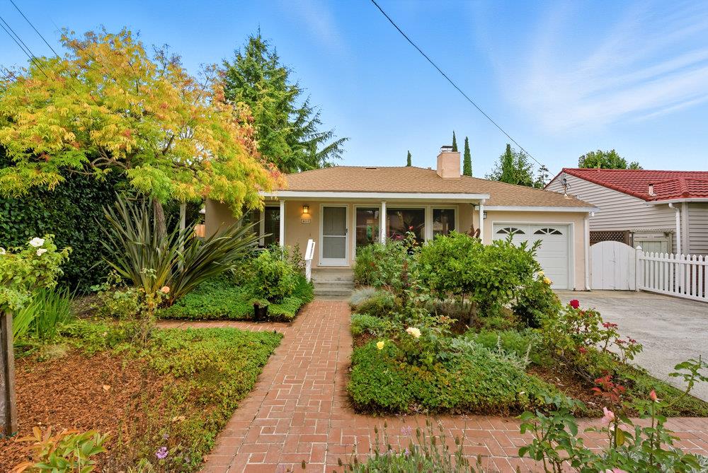An English garden and charming front porch welcome you to this 2-bedroom, 2-bathroom home. With over 1400 square feet, a generous living and family room, this residence offers ample room for comfortable living. The primary suite is tucked away overlooking the western facing backyard and the separate family room offers a clear view through large Andersen doors opening onto the sunny back yard. The previously updated kitchen is equipped with a gas range, dishwasher, microwave and refrigerator, making meal preparation a breeze. Flooring includes updated original hardwood providing a blend of warmth and functionality, while you entertain all winter beside two cozy fireplaces. Additional features such as central AC and Andersen dual pane windows throughout offer year-round comfort. The laundry area located in the one car garage add convenience to your daily routine. Located within the Redwood City Elementary School District, this home is set on a approximately a 5,400 square foot lot and has an extended driveway for 2 car parking.